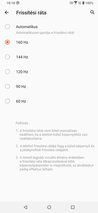 Az már a Nubia óta gyanús, hogy a gyártók szeretnek eldugdosni opciókat és beállítási lehetőségeket, amit nem igazán értünk, ahogy azt sem, az Asus miért nem 160 Hz-es képfrissítéssel dobta be a ROG Phone 3-at a ringbe, ha már lehetséges. És még aktiválni is viszonylag egyszerű. Mishaal Rahman, az XDA Developers főszerkesztője napok óta használja így a készüléket és nem tapasztalt anomáliákat, úgyhogy én is aktiváltam a lehetőséget.