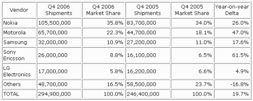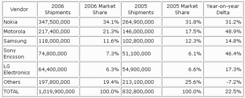 A Nokia mindent egybevetve jó évet zárt, még mindig piacvezető. Az összes bővülésnél jobban, mintegy 31 százalékkal sikerült több készüléket eladnia a 2005-ös évinél.