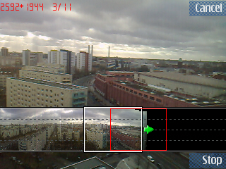 A Symbian Series 60 3rd Edition alapú szoftver kezelőfelülete folyamatosan segíti az akár 12 képből álló részfelvételek elkészítését, melyet követően összefűzi azokat és egyetlen képként menti el.