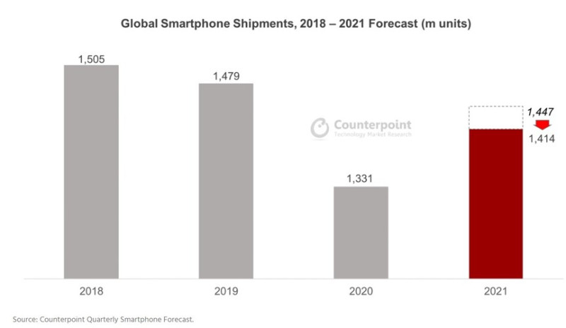 Új elemzéssel állt elő a Counterpoint, ami szerint a korábban jósoltaknál rosszabbul zárhatja a 2021-es évet a mobilpiac, de nem a kereslet megcsappanása, hanem a chiphiány és az egyéb gyártási nehézségek miatt. Az eredeti, optimista becslés szerint idén már a 2019-eshez hasonló évet zárhatott volna az okostelefonos liga, egész konkrétan 1,447 milliárdosnak várták az összpiacot, most viszont tompítottak, és már csak 1,414 milliárd a reálisan várt adat.