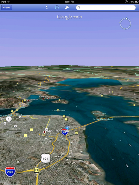 Az Apple iPhone számára készített Google Earth variáns után egy iPad kompatibilis változat is kiadásra került, mely az 1024x768 képpontos kijelző adottságainak kiaknázásával sokkal finomabb rajzolatú képek megjelenítésére képes, mint a korábbi, 320x480 pixeles megjelenítőkre írt változat. Az Apple A4 processzor számítási teljesítményének és fejlett grafikus processzorának köszönhetően a Google Earth nem csupán térképek, hanem 3D épületmodellek megjelenítésére is alkalmas, mely számos városban – többek között Budapesten is – nem csak az ismertebb, hanem szinte valamennyi belvárosi épülethez rendelkezésre áll. Az Apple internettáblára szánt Google Earth variáns kihasználja a multitouch kijelző minden adottságát, valamint a számos különböző réteg integrálásával akár a Wikipedia szabad enciklopédia megfelelő cikkeihez is azonnali hozzáférést biztosít.