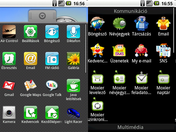 Számomra fontos még, hogy a fent említett Android verzióból gyárilag hiányzik az Exchange támogatás. Az LG ezt a Moxier programcsaláddal hidalta át, amely nálam tökéletesen működik, és teljes egészében azt a funkcionalitást kapom, amit eddig csak Windows Mobile esetében kaptam, a leveleken túl a naptáram és a névjegyzékem is folyamatos szinkronban van - és ehhez nem kellett a Gmail szolgáltatásán keresztülfűzni ezeket az adatokat.
