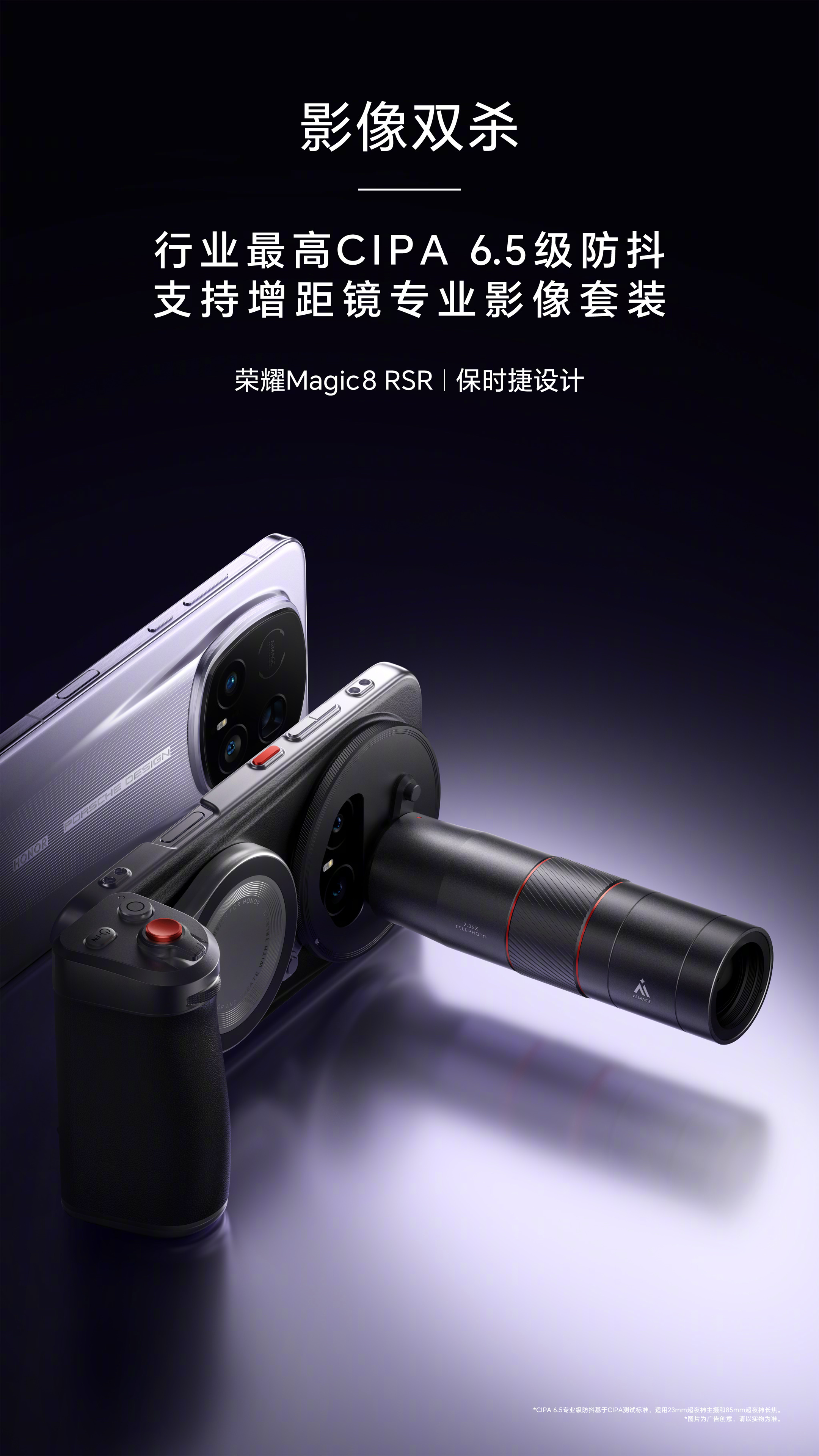 A Honor a Weibón közzétett információk szerint a Magic 8 RSR-ben a piac legjobb képstabilizációját kínálja majd (CIPA 6.5), ez a 2,35x optikai nagyítású telekonverterrel kiegészítve a márka szerint lélegzetelállító fotók készítésének lehetőségét biztosítja majd a felhasználóknak. A Honor kedvcsinálóján jól láthatók az gombok és tárcsák a fotós markolaton, viszont úgy tűnik, az USB-C csatlakozás helyett a Honor mágneses megoldást használhat.