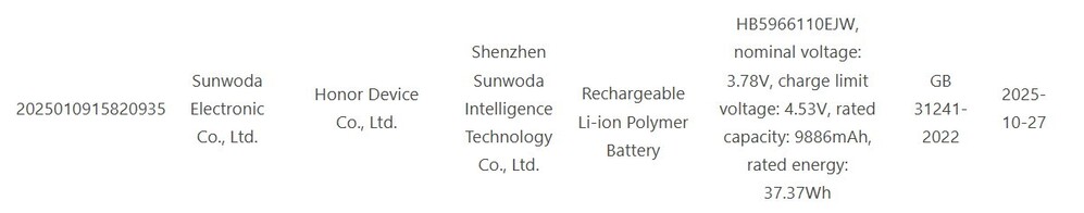 A Honor Power 2-vel kapcsolatban már felmerült, hogy 10 000 mAh kapacitású teleppel sokkolja a nem extrém kialakítású készülékek piacát, ezt most a kínai 3C is megerősítette. A hatóság adatbázisa szerint a készüléket 9886 mAh-s teleppel szerelik, ami a specifikációban pontosan annyi lesz, amennyi. 10 000 mAh. Mindez nem lenne annyira érdekes, ennek a duplája is fellelhető, például az Ulefone kínálatában, de ott azért kell kötni egy-két kompromisszumot, leginkább a méretek tekintetében.