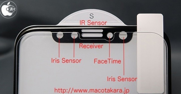 Nem csak az előlap nagy részét kitöltő megjelenítő, hanem a felül betüremkedő hangszóró környékén is lehetnek érdekességek. A Macotakara a kiszivárgott előlap alapján többelemes íriszleolvasóra és infraszenzorra számít a fent látható régióban. Az Apple Insider pedig nem tartja elképzelhetetlennek, hogy a fejlett biometrikus rendszer akkor is felismeri a tulajdonosát, ha az iPhone 8 az asztalon pihen. Mindezt különféle kódokból sikerült kihalászni, a metódus állítólag pearl unlock, azaz gyöngyszem feloldás néven fut.