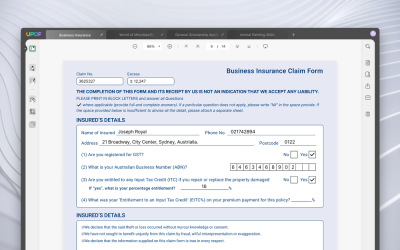A PDF űrlapok kitöltése sokunk számára mindennapos követelmény, legyen szó jelentkezési lapokról, kérdőívekről vagy felmérésekről. Az UPDF felhasználóbarát felületet kínál PDF űrlapok könnyű kitöltésére. Hozzáadhat szöveget, pipákat, sőt: aláírásokat is, hogy a kitöltött űrlapok profik és szakszerűek legyenek.
