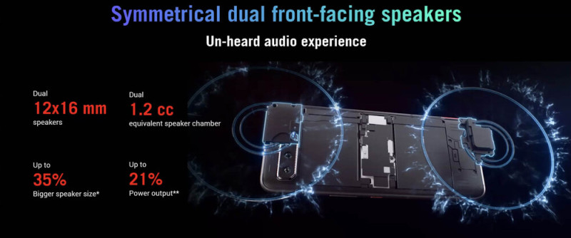 A legdurvább fejlesztéseket a hangrendszer kapcsán végezték. Egyrészt visszakerült a 3,5 mm-es jack csatlakozó (és ezzel együtt egy új, vezetékes headsetet, a ROG Cetra II-t is bemutatták), illetve fogtak egy ESS Sabre Hyperstream II Quad DAC-t, plusz a megkérték a Diracot is, hogy segítsen a hangolásban. A telefonon alul és felül pont ugyanolyan méretű hangszórók vannak (12x16 mm), a kihangosított sztereó áthallást pedig külön hangolgatták, hogy még jobb legyen a térélmény. Erre pedig a haptikus visszajelzést is rátolják, az összhatás pedig vitán felül piacvezető eredményt hoz, a DxOMark audio tesztje szerint ez most a legjobb mobil ebből a szempontból.
