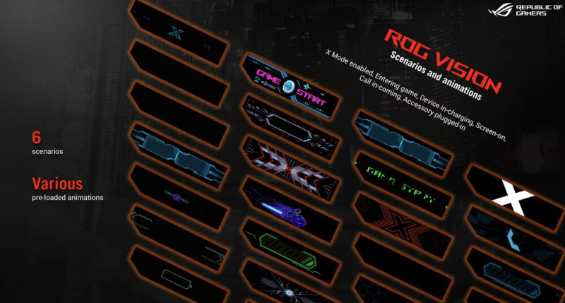 Fejlődtek a telefon oldalán levő Air Trigger felületek is, sokkal jobb az érzékenységük, több gesztus ismernek, plusz akár ketté is bonthatjuk a funkcionalitásukat, így összesen már négy gombnak felelnek meg, plusz a csúsztató mozdulatok. Az ASUS kiszámolta, hogy ha minden előre-hátra és fel-le irányú mozgást, az összes gesztust és az új ventilátoron levő gombokat is használjuk, akkor 18 különböző parancsot tudunk aktiválni a kijelző megérintése nélkül. A haptikus visszajelzést is mindenféle dologhoz hozzáköthetjük, például bizonyos játékokban akár a különböző fegyverek más és más módon rezgetik meg a készüléket, van scout mód, ami inverz színeket jelenít meg, hogy jobban kiszúrhassuk az ellenfeleket a pályán és van külön e-sport mód is, ami főleg versenyeken lehet hasznos, ahol le van tiltva minden értesítés, aktív az átfolyó töltés és ki vannak kapcsolva a spéci funkciók, hogy ne élvezzenek előnyt a játékosok. Az összes játékhoz tartozó összes hardveres és szoftveres paramétert konfig fájlként tovább lehet küldeni másoknak is, plusz nyilván van az egésznek egy közösségi, online platformja is (Armory center), ahol további interakciók, valamint letölthető témák és avatárok is találhatók.