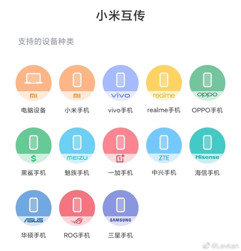 A Xiaomi, az Oppo és a Vivo tavaly év elején jelentette be a Mutual Transfer Alliance nevű együttműködést, ami közös szabványon teszi lehetővé a készülékek közötti közvetlen, vezetékmentes adattovábbítást akár 20 MB/s sebességgel adatkapcsolat nélkül is. A technológia alapja a P2P végpontok között WiFi alapú kommunikáció, a párosítás pedig Bluetoothon keresztül történik.