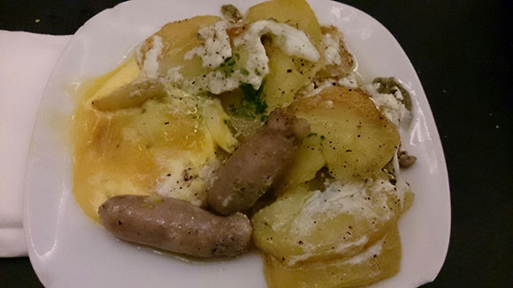 A bandával pedig úgy gondoltuk, tapaszozás nélkül nem telhet el az első este, így nekiindultunk keresni egy arra érdemes helyet, melyet nem egészen 20 méterre a szállásunktól meg is találtunk. A körítés megfelelő volt, bőrdíványok és szépen megterített asztalok vártak, mi pedig éhes szájakkal üldögéltünk az étlap böngészése közben. Miután mindenki megtalálta a maga választottját, feladtuk a megrendelést a rendkívül kedvesen vigyorgó fiatal pincérnőnek. Az eledelek között volt vajas házisonka, polip, tintahal, sültkrumpli, languszta, húsgolyó, paradicsomszeletek mazsolával, így bőven volt minden, ami szem szájnak ingere, habár a seafoodok esetén Bochának olyan fehér arca lett, mint Győzikének a Rettegés fokában, amikor a pókot kellett volna a szájába vennie.