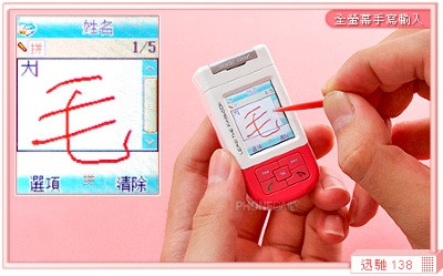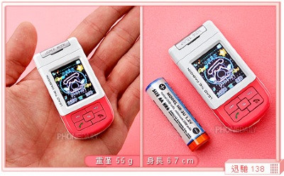 A Xun Chi cég gyártja valószínűleg a világ legkisebb kamerás telefonját. A készülék mindössze 6,7 centiméter hosszú és alig több mint 50 gramm súlyú. A vezérlés érintőképernyő segítségével történik, ám ahogyan a képen is látszik, egyelőre csak kínai nyelven.