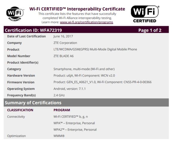 Most például egy ZTE Blade A6 nevű, Android 7.1.1-es rendszerrel futó készülék kapott hitelesítést a WiFi Alliance oldalán. A közelmúltban csak az alsó-középkategóriás Blade A1-hez és a tavaly bemutatott, közepes felszereltségű Blade A2-höz volt szerencsénk, utóbbihoz csak hallomásból. Viszont sajnos egyik készülék sem ért el hozzánk hivatalosan, noha a név, az érdekes számozás ellenére még mindig pozitív tapasztalatokkal van jelen a köztudatban. Azzal együtt is, hogy a Blade A1 hiányos lokalizációja miatt lemaradt a plecsniről.