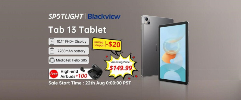 Az előlapra 8, a hátlapra pedig 13 + 0,3 megapixeles kamera került szelfi, normál és mélységélesség funkcióval, oldalt pedig két hangszóró szállítja a multimédiás hangot. A BlackView a Tab 13-at különféle kuponkódokkal most éppen akciósan kínálja az AliExpressen, így akár 135 dollárért is hozzá lehet jutni, az első száz vásárló markát pedig ajándék TWS füles üti.