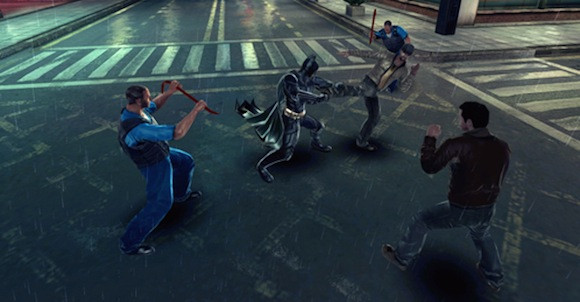 A játék grafikája lélegzetelállító, ugyanis effektek sokaságát találjuk benne. A házakat és más építményeket szépen megrajzolták, valamint az éjszakai fények is kiválóan megjelenítődnek, melyeknek igazán nagy szépsége esőben látszódik, amikor a tócsákban, vagy akár Batman ruháján is látszódnak a közvilágítás vagy éppen a Hold fényei. A Gameloft fejlesztői olyan részletekre is odafigyeltek, mint például a kitűzött zászlók mozgása, a villámlások gyakorisága, a helikopter-reflektorok fényének szélesedése, de az utcán haladva akár a metró mozgását is szemmel követhetjük. Az esőcseppek, az akciójelenetek közötti robbanások és azok darabjai mind bombasztikusak, valójában aligha lehet belekötni a grafikába, főleg annak tükrében, hogy egy okostelefonra készült játékról beszélünk.
