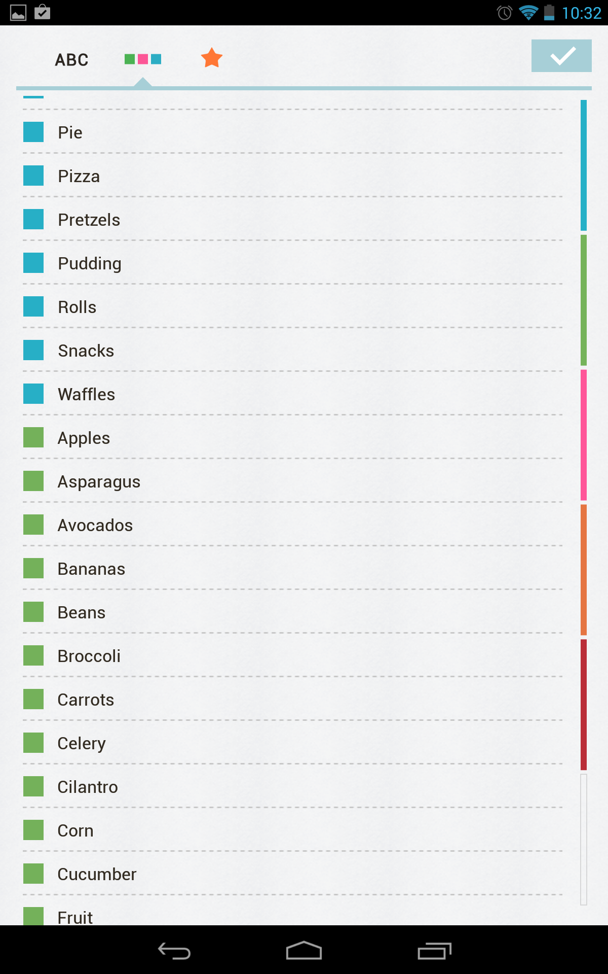 Ha az ember bevásárlólista appot szeretne, számos jól bevált lehetőség közül válogathat, arról nem is beszélve, hogy a legtöbb feladatnyilvántartó szoftver is nagyjából el tudja látni a feladatot. Ennek megfelelően ha a fejlesztő ebben a ligában játszik, muszáj egy rakás extrával telepakolnia az alkalmazását, különben nem nagyon fog növekedni a letöltésszámláló. Ezt a Buy me a pie! mögötti csapat is tudta, a szoftver több, a lista összeállítását felgyorsító funkciót épített az alkalmazásba. Az egyes elemeket például az egyenként történő bevitel mellett vesszővel elválasztva, egy körben is fel lehet tölteni, mindegyikük mentésre kerül, így később ők is felajánlásra kerülnek a bevitelt segítő prediktív felületen. Utóbbi egyébként üresen is jól működik, ha az ember angol nyelven pötyögi be a vásárolni valókat. Az adott vásárfia mellett, egy kettősponttal elválasztva a mennyiség is begépelhető, így ennek megadásával sem kell utólag bajlódni. Az egyes elemeket egy egyszerű érintéssel rakhatjuk át a beszerzett tárgyak listákára, hosszan nyomva a szerkesztés és a törlés is elérhető. Az alkalmazás ezek mellett automatikusan csoportokba rendezi a lista tartalmát azok színe alapján. Ide kapcsolódik az alkalmazás egyik hiányossága: az elemek sorrendjét nem lehet átrendezni, ami egy hosszabb lista esetén azért jól tud jönni.