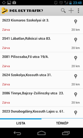 Az alkalmazás funkcionalitása viszonylag egyszerű, ám ezen a téren nincs is szükség sokkal többre. Az app beméri az aktuális pozíciót, majd távolság alapján sorba rendezi a trafikokat, melyeket egy ízléses listában tekinthetünk meg. Természetesen térképes nézeten is böngészhetjük a Nemzeti Dohányboltokat, a főképernyőn egy érintéssel áttérhetünk a Google Maps alapú megjelenítésre. A magyar nyelv mellett angolul is használhatjuk a szoftvert, pozitívum továbbá az új trafik felvitelének lehetősége is.