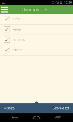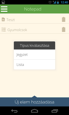 Az alkalmazás kizárólag írásos jegyzetek készítését teszi lehetővé, azaz hangot, fényképet és egyéb multimédiás tartalmat nem rendelhetünk a szövegek mellé. Ez persze nem feltétlenül probléma, jelen sorok írója például igen gyakran készít jegyzeteket a telefonján, melyek 99 százalékban csak szöveget tartalmaznak. A szoftver két típust különböztet meg, a mezei szöveg mellett listát is létre lehet hozni, szépen kipipálható elemekkel. Itt azért hiányzik az elemek átrendezésének lehetősége, illetve új sort is csak a felsorolás legvégére lehet beszúrni. Extraként exportálhatjuk is az elkészített jegyzeteket, így a hordozhatóság is megoldott. A program ilyenkor egy xml dokumentumot készít, melyet természetesen importálni is lehet, azaz nem vesznek el a jegyzeteink, ha készüléket cserélünk. Plusz pont jár a többnyelvűségért is, a magyar mellett angolul is tud az alkalmazás.