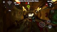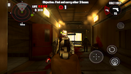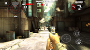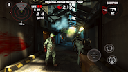 A játék irányítása a szokásos mobilos irányelveket követi. A bal alsó sarokban lévő vezérlő a mozgás koordinálására szolgál, a jobb alsó sarokban a fegyverekkel kapcsolatos teendőket (lövés, újratöltés) érhetjük el. Jobb oldalt található az életerőpontok újratöltésére szolgáló gomb (az ikon leginkább egy guriga toalettpapírra hajaz), a képernyő közepét tapogatva a kamerát forgathatjuk. Első blikkre talán bonyolultnak hangzik a dolog, ám könnyen meg lehet szokni a kezelést.