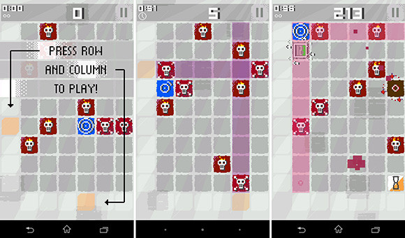 Kétféle játékmód létezik. A 60 másodperces opciót kiválasztva egy perc alatt a lehető legtöbb kék ikont kell kilőni a magas pontszám reményében. Ha az oszlop és sor négyzetét egyszerre érintjük meg a rács szélein, 3 pont a jutalmunk, ha egymás után, 1 pont. Szerkesztőségünk legjobb eredménye ebben a módban 175 pont. Az Infinite, vagyis végtelen módban nincs időkorlát, ellenben jóval többféle ikon is felbukkan a négyzetrácson. Van, amelyik kilövése extra pontokat ér, akad olyan, amelyik zavarossá teszi a képernyőt, de akadnak csapdák és pontelszívó ikonok is, amelyeket vagy kilőni, vagy elkerülni kell, funkciótól függően. A két játékmód közül az Infinite az izgalmasabb és nehezebb, magas pontszám eléréséhez például különösen gyorsan kell reagálni, ha egy pontelszívó fekete lyuk megjelenik, és persze roppant fájdalmas tud lenni, amikor pont rekorddöntés közelében lövünk ki egy aknát. Ebben a játékmenetben 1177 pont a rekordunk, ami e sorok írásakor a legjobb eredmény a Play Játékok ranglistája szerint, de a cikk megjelenése ezen valószínűleg változtat.