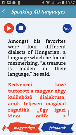 A Metaphor a könnyed és frappáns szókincsfejlesztésre helyezi a hangsúlyt, és ehhez jól passzol az alkalmazás laza vizuális stílusa, számos apró, kifejezetten angolos kis rajzzal, ikonnal, bélyegképpel és egyéb színesítő elemmel. Az alkalmazás számolja, hogy mennyit haladtunk a leckékkel és a feladatokkal, ezeket egyébként fordulatoknak nevezi. A Metaphor ingyenesen és reklámmentesen szerezhető be a Play Áruházból, azonban csak egy lecke és egy sor feladat érhető el, a többiért ki kell nyitnunk a pénztárcákat. Akad egy short story package névre hallgató csomag 3990 forintért, öt leckével és a fent említett feladatokkal, magyarázatokkal és hanganyagokkal. A New York package hat anekdotát és leckét tartalmaz 4990 forintért, hasonló odafigyeléssel a részletekre. A komplett, vagyis premium package ára 6990 forint, ami a fenti két csomagot tartalmazza. Ezek a mobilappos átlagnál magasabb árak, és talán beleférhetett volna több lecke egy-egy csomagba, mindenesetre, akinek elnyerte a tetszését az ingyenes fejezetet, annak bőven tartogat az összes többi is érdekes, frappáns, hasznos és megismerni érdemes kifejezést, színvonalas és szórakoztató körítéssel. Az alkalmazás a használatom során egyébként néhányszor leállt, de legalább gyorsan újratöltötte magát, szóval maradt még javítanivaló a kódban. A Metaphor 3.0-ás, vagy frissebb androidos mobilt vagy táblagépet igényel a telepítéshez, az ingyenes alapszoftver az alábbi linkről tölthető le.