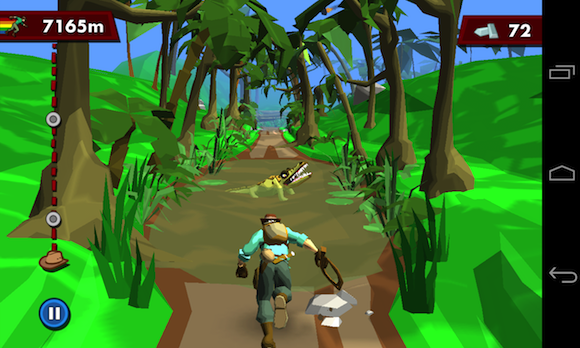 De van-e értelme feladni az emberfeletti erőfeszítések és félórás toalettszünetek során elért Temple Run 2 rekordokat és ismeretlen vizekre evezni? Jelen sorok írója (aki tagja az Anonim Temple Run társaságnak) szerint igen, illetve nem is erről van szó, a Pitfall! ugyanis jó pár kardinális ponton eltér a stílus koronázatlan királyától. A legfőbb különbség, hogy a Pitfall! végigjátszható, legalábbis elviekben: 100 kilométer teljesítése után Harry megmenekül. Más kérdés, hogy ezt nagyjából lehetetlen elérni, én lassan három hete nyüstölöm az appot, a 10 ezer feletti pontszám is büszkeséggel tölt el. A másik fontos eltérés, hogy egy benézett kanyar vagy egy krokodilharapás után nem kell az elejéről kezdenünk, útnak indulhatunk a checkpointok egyikén is. Ez egyébként egy tokenbe kerül, melyet a játékban gyűjthető ércből vagy a szintlépések során kapott gyémántból vásárolhatunk meg. A továbbiak apróságok, ám az ostor például sokat dob a játékmeneten: a képernyőt megérintve Harry csattint egyet a karikással, neutralizálva ezzel az aktuális ellenfelet.