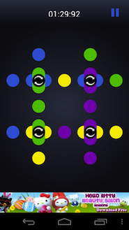 A magyar illetőségű, egyetemistákból álló TrenDeliver fejlesztőcsapat keze munkáját dicsérő alkalmazás egy egészen újszerű ötleten alapul, mely Rubik Ernő híres kockájára épít. Ám jelen esetben kocka helyett egy két dimenziós területen megy a játék, amely egy sorokból és oszlopokból álló rácsot formál. A képzeletbeli vonalak metszéspontjaiban egy-egy vezérlőelem található, melyet megérintve 90 fokot elfordul az adott elem körül található négy darab színes kör. A cél innen már könnyen kitalálható: úgy kell sakkoznunk, hogy az oszlopokban és a sorokban csak egyforma színű körök foglaljanak helyet. A játékban három nehézségi fokozatot (könnyű, közepes és nehéz) próbálhatunk ki, a sorok és oszlopok, valamint ennek megfelelően a színárnyalatok száma pedig ennek függvényében növekszik. A könnyű mód pár perc alatt megoldható, a normál és a nehéz fokozat viszont rendesen megizzasztja az embert. A program folyamatosan méri az időt, a játék végén pedig ha szeretnénk, Facebook-ismerőseinkkel is megoszthatjuk az eredményünket.