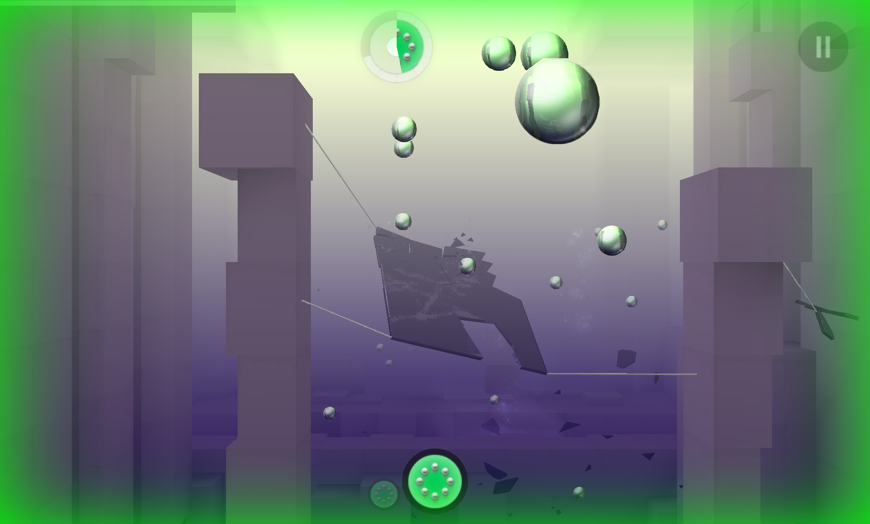 A Smash Hit játékmenete pofonegyszerű: a kamera folyamatosan halad előre, a képernyő megérintésével pedig egy acélgolyót lőhetünk ki, mely az akadályok eltakarítására szolgál. A fémgömb viszont fogyó eszköz, így érdemes a pályákon elszórtan látható kristályokat is becélozni, a labdakészlet ezek eltalálásával tölthető újra. A folyamatosan nehezedő és változó játékmenet során különféle powerupok sodródnak az ember útjába, melyek nagyban növelik a túlélési esélyeket, ilyen például a golyózápor vagy az idő lelassítása. Érdemes külön kiemelni a fizikát is, a tereptárgyak nagyjából úgy reagálnak a külső behatásokra (értsd: a feléjük száguldó acélgolyókra), ahogy azt az ember elvárná, mely kimondottan élvezetessé teszi a céltalan rombolást. Hasonlóan pozitívan tudok nyilatkozni a hangeffektekről is, mely bár a grafikához hasonlóan minimalista stílusú, a különféle üvegcsörömpölések nem hangzanak rosszul.