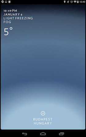 Sajna semmi nem tökéletes, a Solar Weather sem az, a programnak két hiányossága van. Egyrészt egy widgetet örömmel fogadtam volna, az Eye In Sky lassan már beleég a telefonom kijelzőjébe. Arról nem is beszélve, hogy az időjárásjelentő appoknak alapvetően a főképernyőn van a helye, így aztán hiába néz ki jól a program, minden csoda három napig tart, az ember inkább a praktikusabb megoldásokat preferálja. Zárójeles megjegyzés, hogy a fejelsztők nyilatkozata alapján hamarosan érkezik a widget is. Másrészt az iOS-ről Androidra átírt alkalmazásoknál gyermekbetegségnek számító splashscreent lassan el lehetne felejteni. És bár esetünkben még belefér az indítóképernyő (persze meg lehet oldani szebben, jobb felhasználói élmény mellett is az adatok letöltését, lásd például a Flipboard mintáját), azért az nem annyira szimpatikus, hogy egy új város hozzáadása esetén is ezt a felületet kell bámulni.