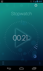 A középső képernyő az aktuális időt és dátumot jeleníti meg, itt három eltérő megjelenítési mód (egy digitális és két analóg) közül választhatunk. A jobb szélső oldalon a stopper és az időzítő érhető el, melyek hozzák az elvárt szintet, futnak a háttérben is, beépülve az értesítési felületbe.