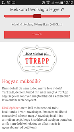 A TúrApp kezelése borzasztóan egyszerű. Elindítás után az alkalmazás megkérdezi, hogy a telefontól kapott legfrissebb koordináták megfelelnek-e jelenlegi pozíciónknak, és ha igen, már csak azt kell megadni, hogy a hány kilométeres körzetben vadásszon az alkalmazás POI-kat, és a Turistautak és a Wikipedia adatbázisai alapján lehúzza az internetről a látnivalókat. A helyzetünket az OpenStreetMapen kézzel is beállíthatjuk.