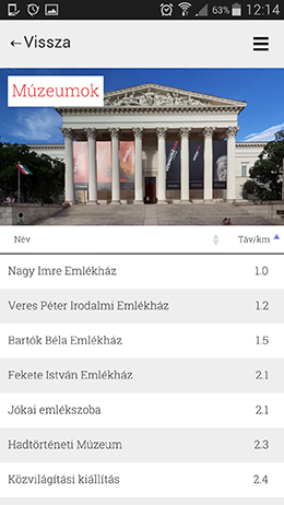 A következő témák szerint vadászhatunk érdekességeket: múzeumok, kastélyok, várak, templomok, barlangok, kilátók, strandok, állatkertek, vidámparkok és romok. Egy kategóriára rálépve listázásra kerül az akár tucatnyi látnivaló, opcióval távolság szerinti rendezésre. Ha rálépünk egy szimpatikus találatra, akkor megkapjuk az OpenStreetMap passzoló térképét a POI-val, leírást, ha a Wikipedián a helyszínhez tartozik olvasnivaló, illetve lehetőséget a navigálásra telefonunkon lévő alkalmazások, mondjuk a Google Térkép segítségével.