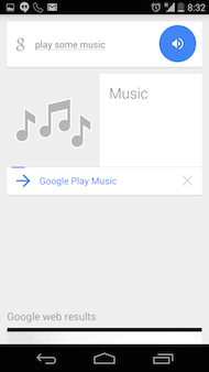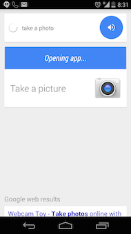 Új hangutasításokkal bővült a Google mobilos keresője. A Search névre hallgató alkalmazás immár videó és fénykép készítésére is utasítható a take a video és take a photo parancsokkal, értelmezés után elindítva a kameraszoftvert. Ezek mellett a zenelejátszót is el lehet indítani a play some music hangutasítással, ekkor a Google Music szoftvert indítja el a rendszer, majd elstartol a felhasználó zenei preferenciája alapján dolgozó I’m feeling lucky rádióállomás. Leginkább tehát apróságokról van szó, melyek használatát nem sok minden indokolja, a hangutasítások feldolgozása jóval lassabb, mintha az ember kézzel rábökne a megfelelő parancsikonokra - persze bizonyos körülmények között hasznos lehet a dolog.