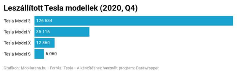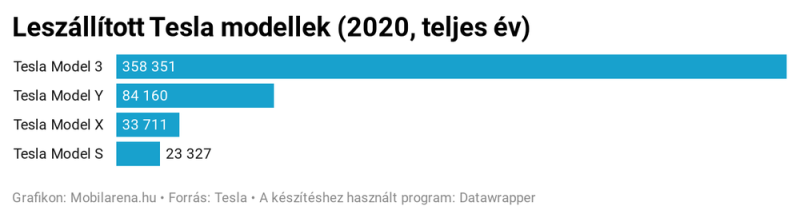 A Tesla publikálta a 2020 negyedik negyedéves eredményeit, illetve a teljes évre vonatkozó számait is, amelyekből kiderül, hogy 509 737 darab gépjárművet gyártottak és 499 550-et szállítottak le, ami az esetükben azt jelenti, hogy konkrétan ennyi autót adtak át a tulajdonosaiknak. Az utolsó negyedévet és a teljes évet nézve is a Model 3 volt a legnépszerűbb, az egész évben 358 351 darabot szállítottak le (tehát adtak át) belőle, míg a Model Y-ból 84 160, a Model X-ből 33 711, a Model S-ből pedig 23 327 került a végfelhasználókhoz. A gyártási számokat nem adták meg külön típusonként, a teljes évben Model 3-ból és Model Y-ból 454 932 darabot készítettek, meg a Model S és Model X párosból összesen 54 805-öt. Az utolsó negyedév kiemelkedő volt, az előbbi páros esetén 163 660, míg az utóbbinál 16 097 darab készült el.