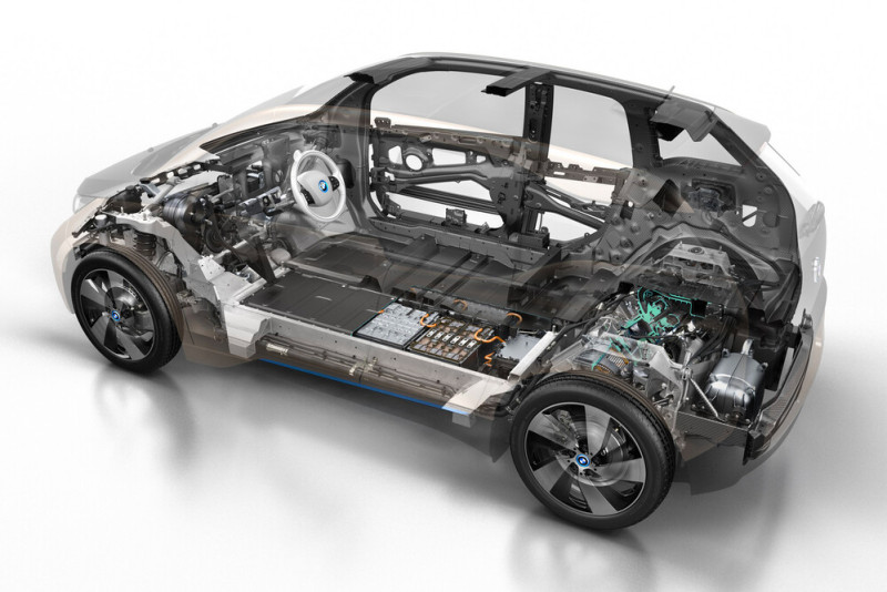 Megjelenésekor az akkumulátortechnológia még nem állt azon a szinten, hogy óriási hatótávval kecsegtessen az autó, bármennyire is könnyűnek számított a mezőnyben. A BMW ezért furcsa megoldáshoz folyamodott (amit azóta sem nagyon csinál senki, de ez nem véletlen), beleraktak egy 650 köbcentis, kéthengeres benzinmotort is, amely a C650-es robogóból származik, de csupán 9 literes benzintartályt raktak hozzá. Ez a motor nem az autót hajtja, hanem kvázi generátorként működik és az akkumulátorokat tölti, természetesen a cél a hatótáv növelése volt. A motor csak 5% alá eső akkumulátoros töltés esetén kapcsol be, addig pusztán cipeljük magunkkal, de tény, hogy vész esetén ez a megoldás tényleg ki tudja húzni a júzert a bajból. Ennek főleg a gyártás korai szakaszában volt értelme, amikor még a hatótáv karcsú volt, hiszen a bemutatásakor 22 kWh-s akkumulátor 130-160 kilométeres távolságra tudott csak egy töltéssel eljutni. A kiegészítő motor másik értelmét pedig az akkori töltőhálózati infrastruktúra indokolta, jócskán ritkábban voltak még elérhető publikus töltőpontok Európában.
