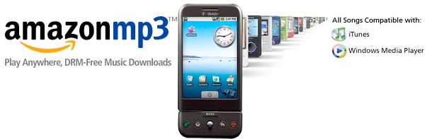 It is now official that Amazon's music database of six million tracks is directly accessible from the Google Android-based T-Mobile G1 phone. The highly popular MP3 tracks that lack copy protection can be purchased for 89 cents, while full albums cost $6-$10 USD. The Amazon MP3 application, installed by default on T-Mobile G1, strangely allows to download music tracks only via WLAN connection, but browsing the database and listening to the tracks is possible via the T-Mobile network too.