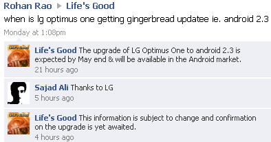 A kisebbik dél-koreai gyártó már tavaly év végén megerősítette, hogy a számos különböző néven piacra dobott Optimus One számára idén Android 2.3 alapú firmware is elérhető lesz, ám a kiadás időpontjáról ezidáig nem volt információ. Az LG indiai részlege szerint a frissítés valamikor május végén válhat elérhetővé, de ez természetesen a fejlesztés ütemétől függően változhat. A világszerte milliós példányszámban eladott 113,5x59x13,3 milliméteres és 129 grammos LG Optimus One P500 3,2 hüvelykes, 320x480 képpontos érintőkijelzőt, 3,2 megapixeles autofókuszos kamerát, GPS, WLAN (802.11b/g/n) és Bluetooth 2.1+EDR modult, digitális iránytűt, 7,2 megabites HSDPA átviteli képességet, 600 MHz-es ARM 11 alapú Qualcomm processzort, Adreno 200 grafikus gyorsítót, 512 MB RAM-ot és 8 óra beszélgetési időt biztosító 1500 mAh kapacitású akkumulátort kapott.