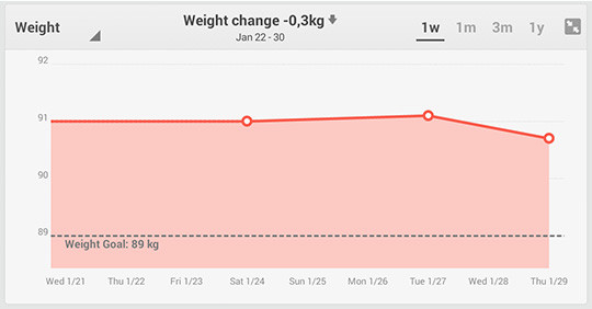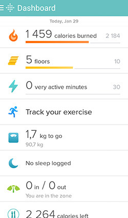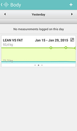 A FitBit alkalmazását a Charge kapcsán már részletesen bemutattam, és az Aria is gond nélkül küldi a statisztikákat az iOS-es, Windows Phone-os vagy androidos eszközre, csak épp nem Bluetooth-on, hanem WiFI-n. A mérésekből statisztikák és grafikonok készíthetők, illetve, ha az alkalmazáson belül megadtunk egy fogyási célt, a FitBit appja jelez, hogy hol állunk a kívánt testsúlyhoz képest, és mi a teendőnk annak eléréséhez.
