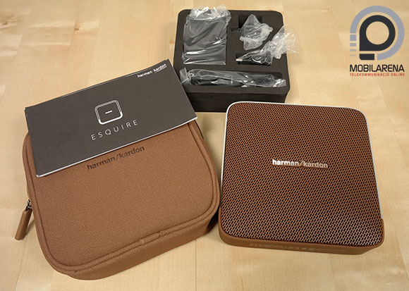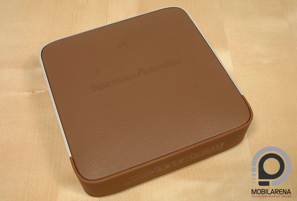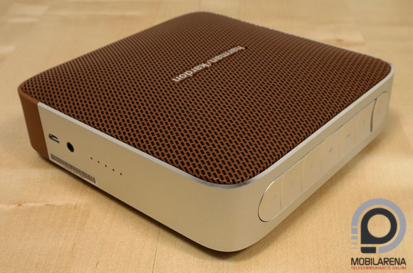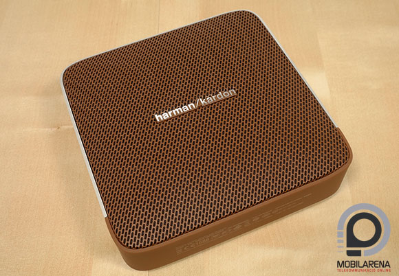 Anyaghasználat és összeszerelési minőség szempontjából viszont mindent üt az Esquire. Fekete, fehér és barna színekben érhető el, nálunk ez utóbbi járt, ami kimondottan dögös és formabontó választás. Az oldalsó rész aluminiumból készült, melynek széleit tükörfényes polírozták a gyárban; az alsó rész persze gumírozott, úgyhogy az asztalon stabilan megáll a kiegészítő. Az előlapot a megszokottol eltérő mintázatú rács borítja, a hátlap pedig bőrből készült. Felül szintén aluminium gombokat, valamint egy visszajelző ledet találunk, de fényforrásokból oldalra is jutott, itt egy ötös skálán látjuk az akkumulátor töltöttségét; ez a megoldás erősen hasonlít a MacBook Pro számítógépeknél találhatóra. Itt található továbbá a 3,5 milliméteres jack bemenet és a töltésre szolgáló microUSB dugasz is. A hangátvitel vezeték nélkül is megoldható, a Bluetooth-párosítást NFC könnyíti meg. Jó hír továbbá, hogy telefonbeszélgetések kihangosítására is alkalmas a Harman Kardon újdonsága, hiszen található benne zajszűrővel ellátott mikrofon is.