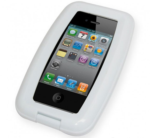 Szó szerint más vizekre evezve juthatunk el következő alanyunkhoz, amely egy elsőre kissé ormótlannak tűnő, vastag, fehér kerettel rendelekző tok. Bumfordiságát hamar meg lehet neki bocsátani, ha tudjuk, hogy vízálló a történet, s pont arra is van, nedves környéken jó szolgálatot tehet, pláne tudva, hogy a plexin keresztül a kezelhetőség is megmarad, sőt, hívások fogadására is van lehetőség. A hivatalos adatok szerint egy méteres mélységig nem esik bántódása a bele helyezett iPhone-nak (illetőleg konkrétan bárminek). Aqua Phone Case néven lehet megtalálni a terméket a neten.