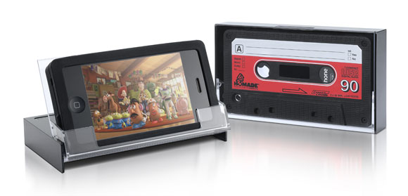 Szintén a jópofa tokok vonalába tartozik a kazetta alakú burkolat, ebben van egy kis plusz ötlet is, ugyanis akárcsak egy igazi kazettának, ennek is kinyitható a belső része, s így asztali állványként is funkcionálhat.