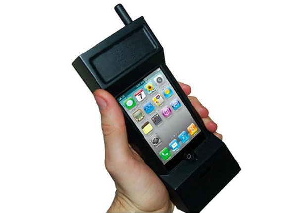 A következő csoda is az idétlenség csimborasszója, a tok neve 80’s Retro iPhone Case, ami sokat elárul arról, hogy mit fogunk látni. Brutális méretű, fröccsöntött műanyag téglatelefon, amelybe bele lehet tenni az iPhone 4-et. Meglehetősen ambivalens érzés ránézni egy ilyen motyóra, az ikonos kezelőfelület igen furcsán hat egy ilyen oldsholl csomagolásban.
