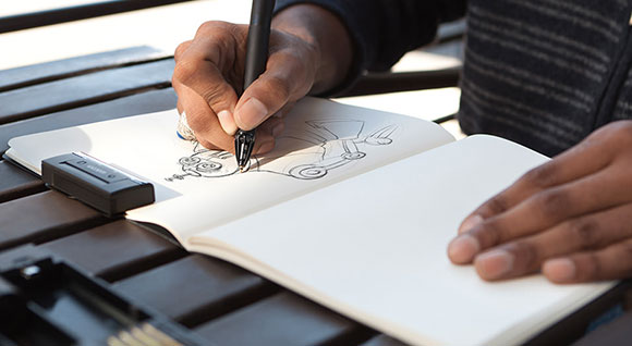 A csomagolásban egy felnyitható dobozt láthatunk, melyben a bármilyen A4 és A7 közötti méretű papírra rácsíptethető fogadóegységet, a jó anyagokból összerakott tollat, valamint ahhoz négy a pótbelet találunk. Mind az érzékelő, mind a toll tölthető akkumulátorral van felvértezve, a működési idő nagyjából 15 óra, a feltöltés pedig nagyjából 3 órát vesz igyénbe. Korlát viszont, hogy a fogadó egység egyszerre legfeljebb 10 oldalnyi anyagot tud tárolni, de ez egyben azt is jelenti, hogy az eszköz használatához szerencsére nincs szükség folyamatos számítógépes kapcsolatra, nyugodtan rajzolgathatunk, az eredményt pedig majd akkor menthetjük át a számítógépre, amikor épp oda kerülünk.