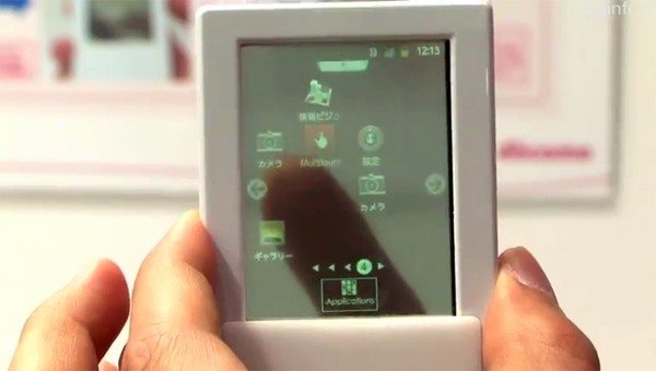 A piac első átlátszó megjelenítővel szerelt mobiltelefonja, a Sony Ericsson Xperia Pureness, az egyedisége ellenére sem vált sikertermékké, melyért csak részben okolható a kissé elrugaszkodott árfekvése. Az igazi probléma sokkal inkább a technológiai bravúr öncélú alkalmazása volt, hiszen az áttetsző panel tulajdonképpen teljesen feleslegesen foglalta el az értékes helyet. Az alábbi videón látható Fujitsu és NTT docomo koprodukcióban azonban a transzparens megjelenítő kettős érintésérzékeny réteget is kapott, vagyis a megjelenítő hátoldalát „kapirgálva” is vezérelhető. A technológia öncélúságát persze ezek a trükkök is nehezen leplezik, hiszen a képernyő mögötti ujjak folyamatos láthatósága nehezen ellensúlyozza a nagyobb kapacitású akkumulátor előnyeit, mely bizony pont a méretes megjelenítő mögött kaphatott volna helyet.