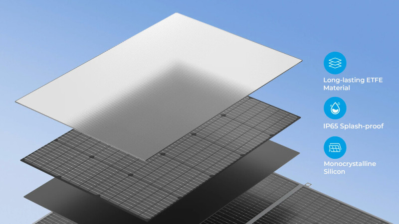 Ahogyan a korábbi modellek, a PV420 is hordozható kialakítású, összesen négy részből áll, amelyeket egymásra lehet hajtani, hogy aztán így egy relatív könnyen magunkkal tudjuk vinni. Az üzembe helyezés egyszerű, az IP65-ös, fröccsenő víz elleni minősítést is megkapó PV420 kihajtogatás után a hátsó támasztékkal három különböző szögben megdöntve állítható fel, hogy a besugárzás optimális lehessen. A panel maximum 400 wattos teljesítményt tud leadni, tökéletes körülmények esetén hat órán belül tud 2 kWh-nyi áramot termelni.