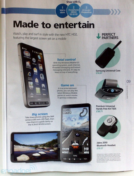 A HTC Leo néven ismertté vált, ám a gyakorlatban Pro.Three, illetve az O2 kínálatban HD2 néven megjelenő készülék már korábban is ismertté vált, ám az O2 kiszivárgott sajtóanyaga hivatalosan is megerősítette azt. A Windows Mobile 6.5 alapokon nyugvó jövevény 4,3 hüvelykes, 480x800 képpontos érintőkijelzőt, 5 megapixeles autofókuszos kamerát, HSPA átviteli képességét és 1GHz-es Qualcomm Snapdragon processzort kapott.