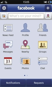 A Facebook portál szinte minden funkcióját elérhetjük a kliensen keresztül is. A státuszfrissítések, események és üzenetek kezelése mellett a barátok menedzselésére, valamint fotók nézegetésére és feltöltésére is lehetőség van. Emellett megjelent a csevegés is, immár a badás telefonunkkal is csetelhetünk a facebookos ismerőseinkkel. A szöveges állapotfrissítés mellett képet is feltölthetünk, valamint az aktuális hely megjelölésére, azaz az úgynevezett becsekkolásra is lehetőség van.