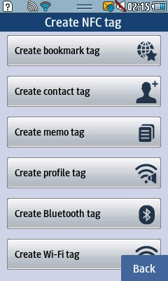 A másik érdekes funkció az úgynevezett NFC tagek létrehozása. Segítségével az erre alkalmas készülékekhez és címkékhez bizonyos funkciókat rendelhetünk, amelyek automatikusan aktiválódnak, amint a szenzor érzékeli őket. A telefon a következőket támogatja: