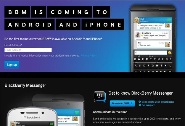 A hosszas várakozás után végül alternatív platformokra is elérhető lesz az üzleti vásárlóközönség és végfelhasználók körében is rendkívül népszerű BlackBerry Messenger szolgáltatás, mely eleinte csak mobiltelefonokra lesz elérhető viszonylag limitált funkcionalitással. Az Android Ice Cream Sandwich és Jelly Bean okostelefonokra szeptember 21-én, iOS 6 és 7-alapú iPhone-ra pedig egy nappal később debütáló BBM kliens a hangjegyzetek és fotók megosztásán túl maximum 30 fős csoportos csevegésre is lehetőséget teremt, méghozzá olvasási visszaigazolással és gépelési aktvitás kijelzéssel együtt. A BlackBerry Messenger szolgáltatás nem igényli sem a telefonszám, sem pedig az email cím megosztását, hiszen a partnerek felvételéhez mindössze egy egyedi PIN szükséges.
