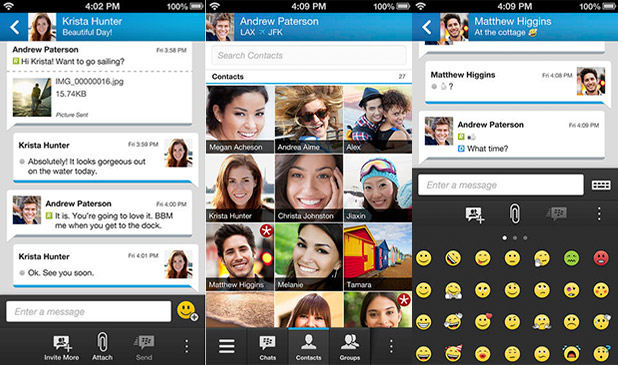 Az üzleti világban méltán népszerű BlackBerry Messenger hosszú ideig kizárólag csak a kanadai gyártó készülékeire volt elérhető, ám a piaci részesedés és bevételek drasztikus visszaesése után a vállalat az alternatív platformok felé is nyitott. A BBM kliensszoftver első körben csak az iPhone és az Android okostelfonokra volt telepíthető, a legújabb kiadás azonban már iPad és iPod touch modellekkel is kompatibilis, ráadásul az Android okostelefonok gyors lemerítésének hibája is kiküszöbölésre került. Valamennyi platformon egyszerűbbé vált a regisztrált ismerősök keresése, a BBM csoportlisták rendezése és szűrése, valamint a BBM kód megosztására is több opció kínálkozik. Az iOs változatnál a jobbról-balra író nyelvek támogatásán is sokat finomított a BlackBerry