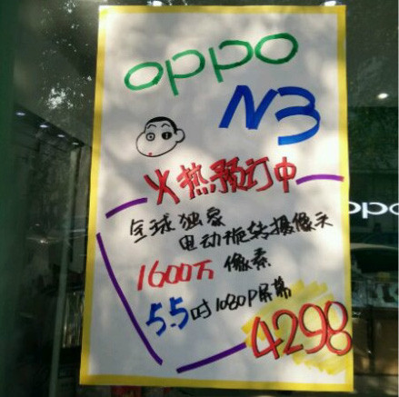 Az Oppónak számos üzlete van Kínában, és a GizChina az egyik ilyet meglátogatva az N3 árát is megtudta. A készülék az arrafelé igen drágának számító 4298 jüanos, azaz kb. 170 ezer forintos áron startolhat el, drágábban, mint a QHD-s Find 7. Ugyanakkor a phablet mérethez prémium borítás, ujjlenyomat-olvasó és hatalmas akkumulátor járhat.